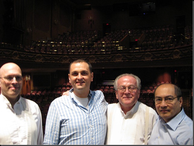 We sang our first concert of our East Coast tour last night in Fredericton, NB at the Playhouse Theatre. Jenny (right) and Catherine are standing with Tim Yerxa and Mark (left). Tim is the Executive Director of the Playhouse. Jon Washburn, our conductor, humorously pointed out that the first time he conducted the choir in the Playhouse was in the early 1970s… probably before Tim had even been born.